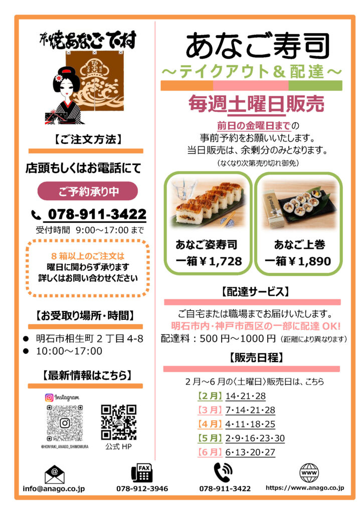 明石店にてお寿司の販売再開のお知らせ。